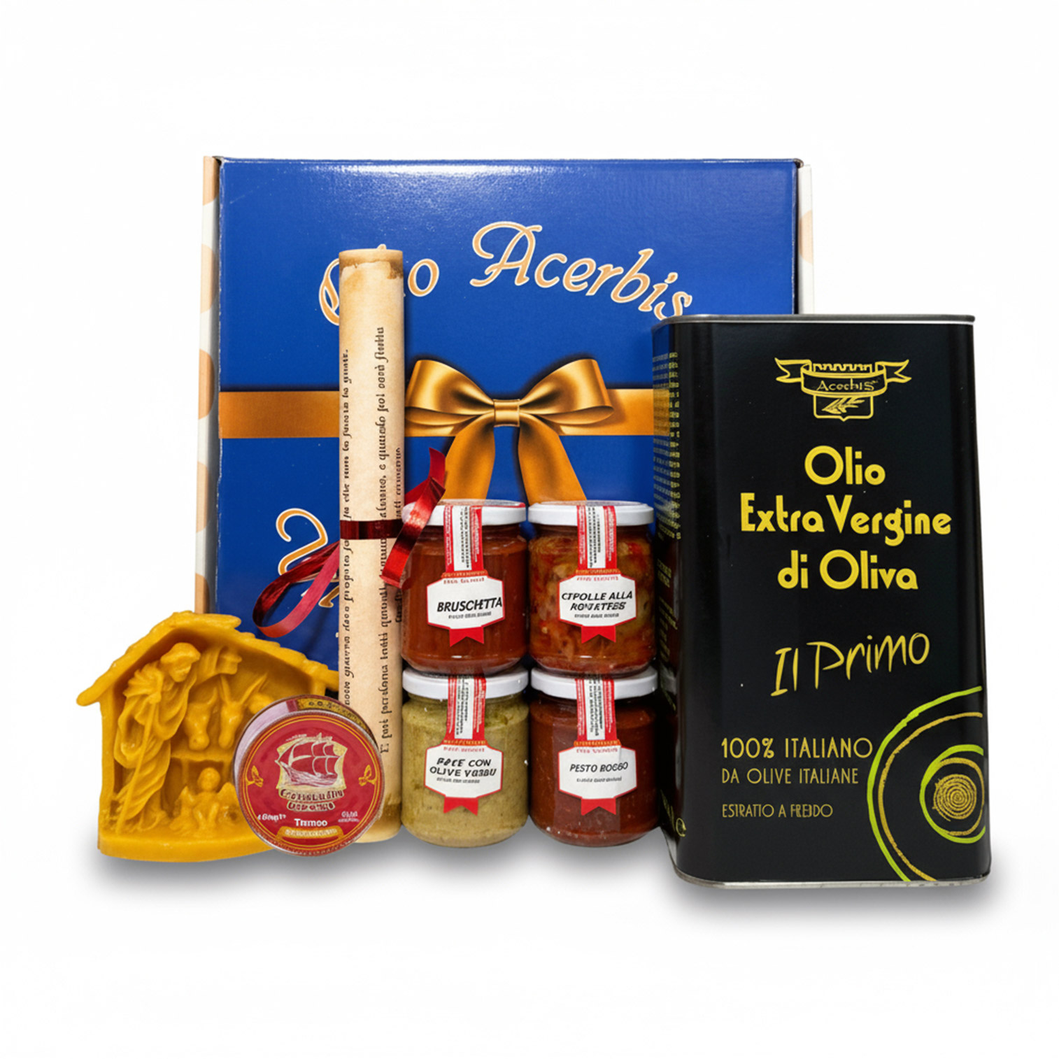 Celebra la tradizione con il Bauletto Evento: un’elegante confezione regalo che racchiude il meglio della nostra produzione artigianale. Olio Extravergine d’Oliva Primo Novello in latta da 3 litri, specialità gastronomiche della tradizione italiana e una preziosa scultura della Natività in cera d’api. Un dono autentico, ricco di sapori e simboli, perfetto per le occasioni speciali e per chi ama l’eccellenza italiana.